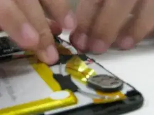 Осторожно удалите скотч с проводов, соединяющих динамик с материнской платой.