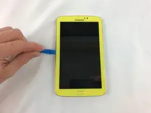 Используя пластиковый инструмент для открытия, вставьте его в зазор между экраном и задней крышкой.