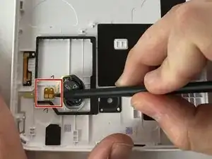 С помощью лопатки аккуратно подденьте шлейф динамика.