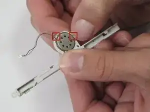 Используйте пинцет, чтобы отсоединить провод динамика от материнской платы, потянув за разъем (не за провода) вниз к динамику.