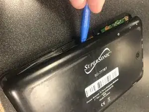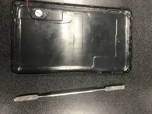 Сначала откройте заднюю панель планшета, вставив мягкий инструмент между задней крышкой и экраном, как показано на фотографиях.