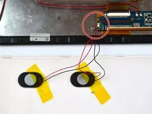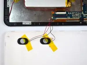 В планшете установлены два динамика, прикреплённые к внутренней стороне задней крышки. Со временем или при неаккуратном обращении динамики могут утратить способность воспроизводить чистый звук или перестать работать вовсе. Для исправления этой неисправности необходимо заменить один или оба динамика.