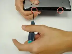Удалите два винта Phillips #00 сбоку планшета.