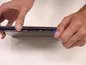 Возьмите один из пластиковых инструментов для открывания и вставьте его в середину планшета, начиная со стороны порта USB.