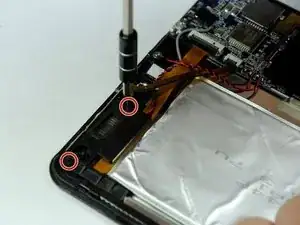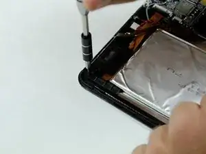 Используйте отвёртку Phillips J000, чтобы вынуть два винта длиной 4,3 мм, крепящие динамик к корпусу, и отложите их в сторону.