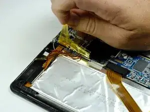 Снимите жёлтую ленту, закрывающую пучок проводов, расположенный возле верхнего правого угла аккумулятора.