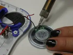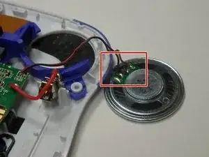 Отпаять чёрный и красный провода, соединяющие динамик с устройством.
