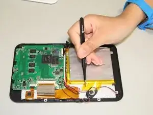 С помощью пластиковой лопатки снимите заднюю крышку устройства.
