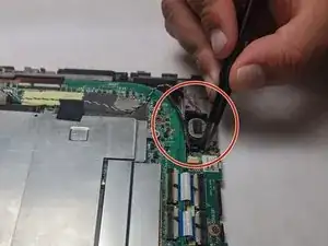 Захватите динамик пинцетом и аккуратно поднимите его вверх до полного извлечения.