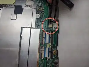 Используйте отвертку Phillips #00, чтобы выкрутить три винта длиной 3 миллиметра, крепящие переднюю панель к задней панели, находящиеся над областью камеры, в верхней части планшета.