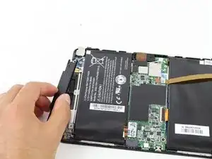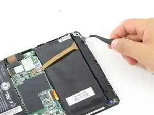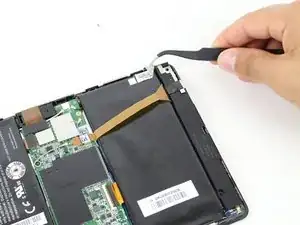 Снимите наклейки, удерживающие левый динамик, с помощью пинцета или руками.