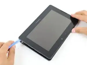 Используйте пластиковый инструмент, чтобы приподнять заднюю панель, вставив его между передней и задней панелями.