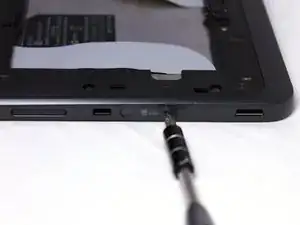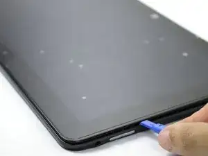 Вставьте пластиковый инструмент для открывания между экраном и рамкой и проведите им по краям, чтобы отделить рамку от планшета.