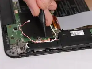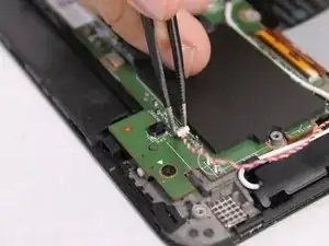 С помощью пинцета отсоедините красный и белый кабельный разъём от платы.