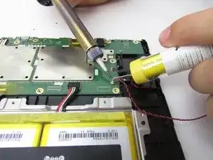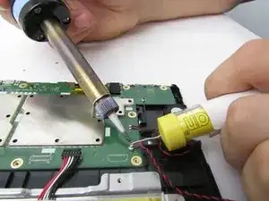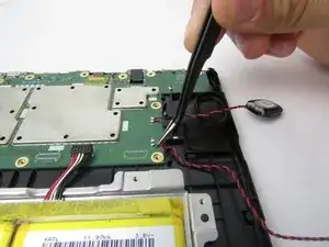 Осторожно удалите провода вокруг материнской платы, используя безопасный для ESD пинцет и паяльник в месте соединения кабеля динамика.