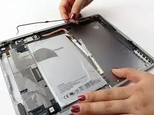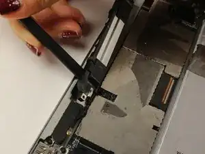 Будьте осторожны, чтобы не оторвать экран слишком далеко. Он все еще будет подключен к устройству с помощью кабеля для фронтальной камеры и широкого шлейфа дисплея.