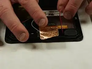 Используя пластиковый инструмент для вскрытия, осторожно поместите его под один из углов аккумулятора.