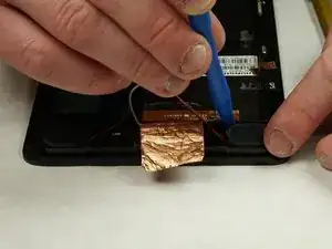 Используя пластиковый инструмент для вскрытия, приподнимите заднюю крышку планшета.