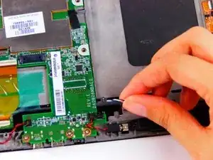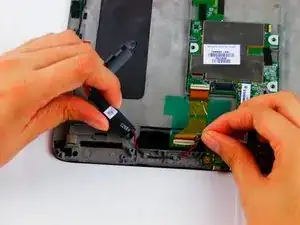 Отстегните проводной разъём левого динамика, чтобы полностью извлечь его из устройства.