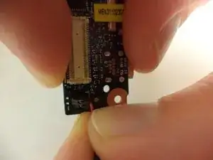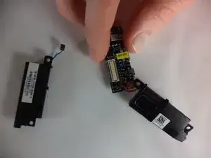 Чтобы удалить кабели, соединяющие динамики и плату IO, аккуратно потяните за кабель.