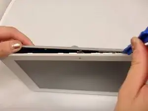 Вставьте пластиковый工具 где-либо в шов между задней крышкой и экраном.
