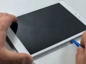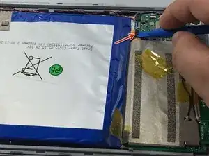 Используйте пластиковый инструмент для открывания, чтобы снять металлическую заднюю панель планшета.