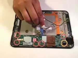 Внутри Kindle Fire может быть приклеена лента, поэтому проявите осторожность и проверьте, прежде чем пытаться снять заднюю крышку.