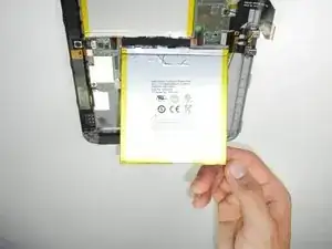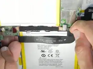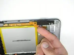 Поднимите серебристые концы чёрного гибкого кабеля, лежащего поверх аккумулятора.