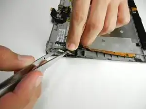 Вставьте большой пластиковый инструмент для вскрытия рядом с разъёмом для наушников Kindle.