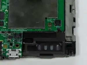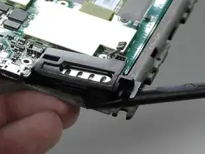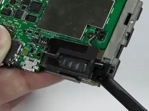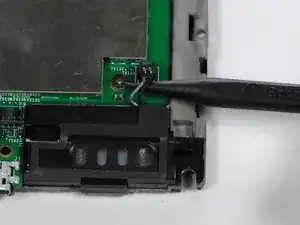 Используйте острый конец лопатки, чтобы отсоединить разъём динамика от платы с обеих сторон.