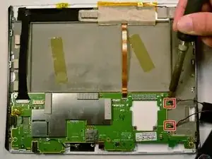 Удалите два винта Phillips #00 размером 3,5 мм, которые закрыты под крышкой micro SD.