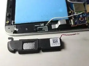 Снимите красно-чёрный кабельный разъём, соединяющий динамики с материнской платой, пинцетом, потянув разъём влево с небольшим усилием.