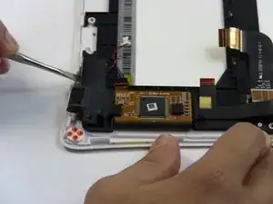 Используйте металлическую лопаточку, чтобы отделить динамик от рамки.