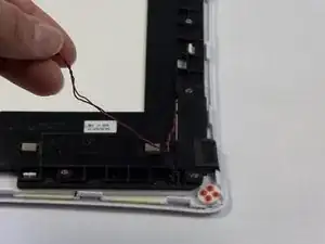 Снимите провод левого (L) динамика с рамки, потянув его в сторону и вверх.