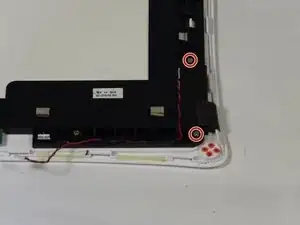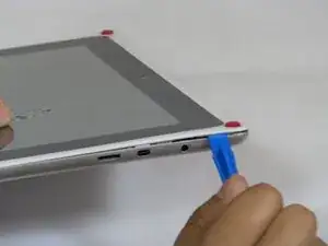Используйте пластиковый инструмент для вскрытия в шве в верхнем левом углу, затем подденьте и разомкните угол.