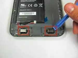 Используйте пластиковый инструмент для открытия, чтобы поддеть динамики от задней панели, начиная с внутреннего края. Динамики, вероятно, приклеены к задней панели, поэтому ожидайте некоторого сопротивления.