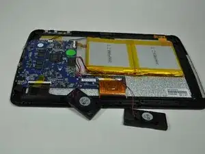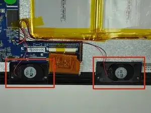 Динамики расположены внизу устройства, под батареей и рядом с материнской платой.