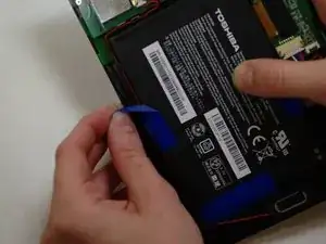 Аккуратно снимите электрическую изоляцию, закрепляющую аккумулятор на месте.