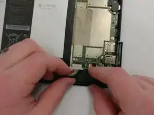 Снимите нижнюю полоску скотча, удерживающую батарею, убедившись, что вы не отклеиваете ничего другого.