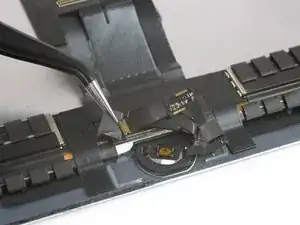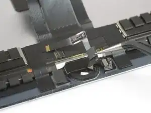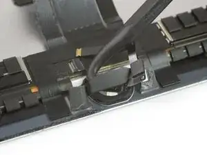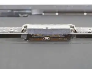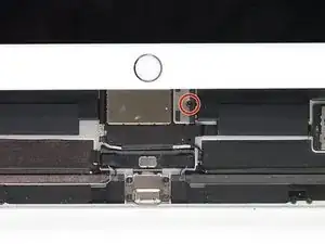 Удалите два винта Phillips 1,3 мм, крепящих защитную скобу разъёма дисплея.