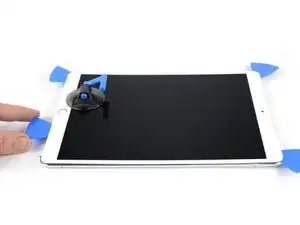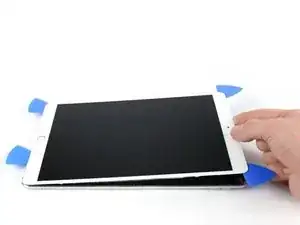Оставьте лопатку, вставленную у верхнего левого угла iPad, чтобы клей не склеился вновь.