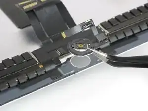 Пинцетом вытяните гибкий кабель кнопки «Домой» прямо из ZIF-разъёма.