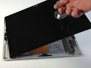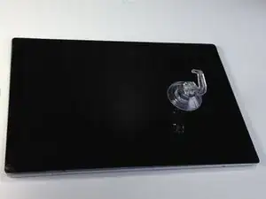 С помощью присоски оттяните дисплей от корпуса. Возможно, придётся удерживать корпус руками.