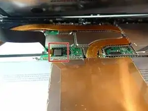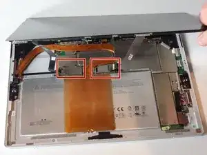 Перед установкой нового дисплея внимательно осмотрите старый, возможно, потребуется перенести некоторые детали с задней стороны старого дисплея на новый. В частности, может потребоваться перенести плату NTrig в углу, отключив два присоединённых ленточных кабеля и использовав нагрев и аккуратное поддевание, чтобы отделить клей, фиксирующий плату.