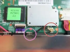 Отстегните антенный провод от материнской платы.