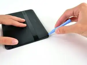 Подденьте корпус и проведите пластиковым инструментом для вскрытия по периметру Kindle Fire, чтобы освободить защёлки, скрепляющие половинки корпуса.