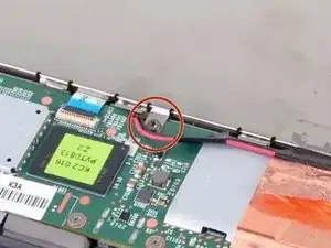 Винт Torx T5 находится на материнской плате рядом с антенной защёлкой. Удалите его специальной отвёрткой T5 Torx.