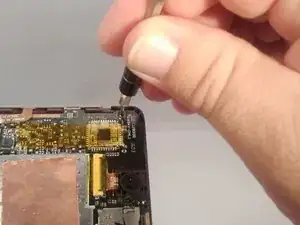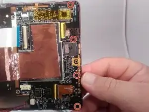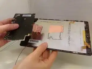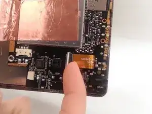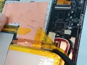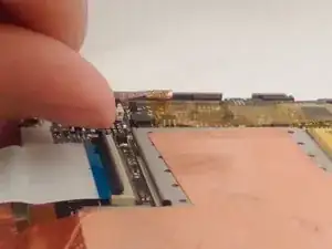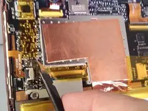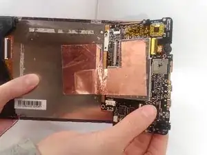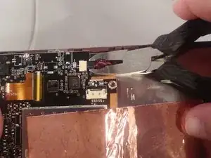 Удалите оставшуюся медную ленту с задней стороны сборки дисплея и с материнской платы.
