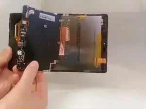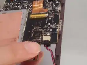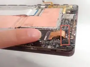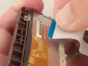 Снимите ленточный кабель сборки дисплея, осторожно потянув за него.