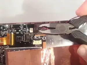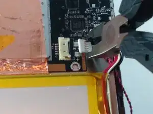 С помощью небольших плоскогубцев аккуратно отсоедините мужской разъём аккумулятора от материнской платы.